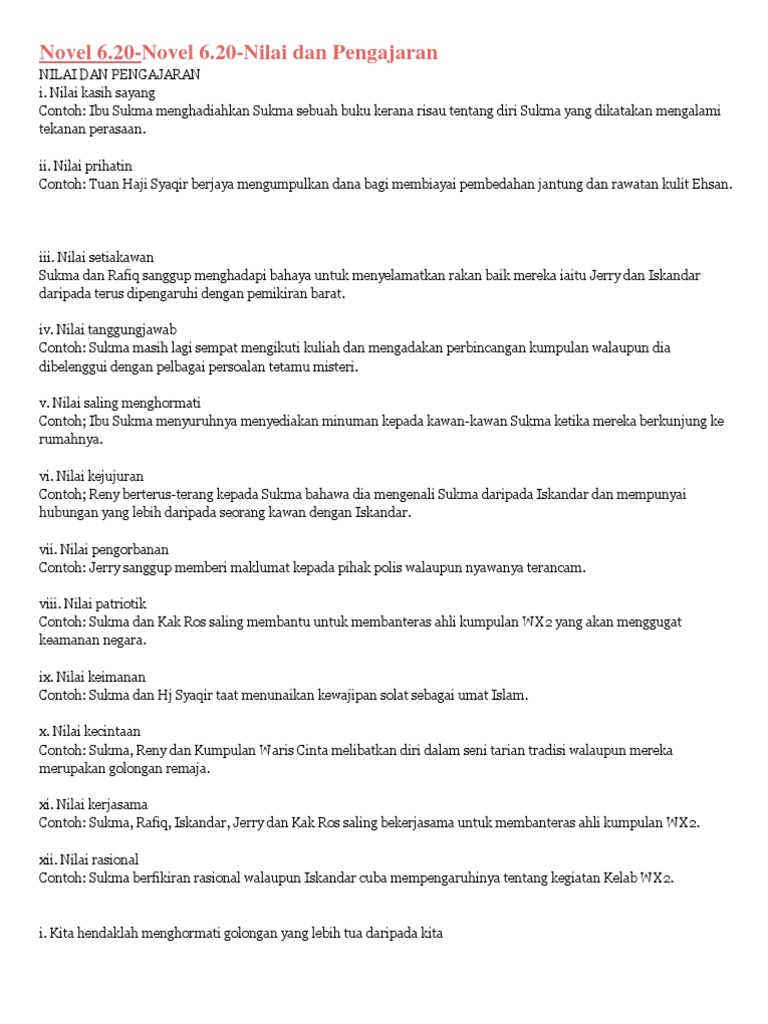 Novel 6 20 Nilai Dan Pengajaran Pdf